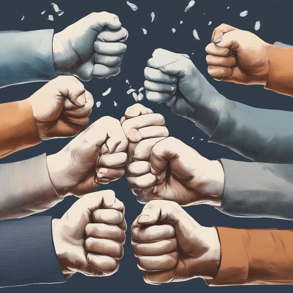 In conclusion, the image of fists pumping embodies the spirit of nurturing leadership in the workplace. It signifies not just victories but the ethos of collaboration, support, and empowerment. It stands as a beacon, reminding us of the transformative power of nurturing leaders who inspire, uplift, and cultivate environments where everyone can thrive.